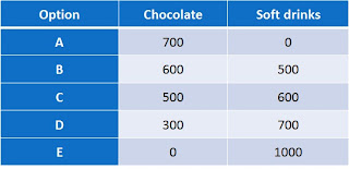 A producer can choose to produce either chocolate or soft drinks. His schedule of possible production combinations is given below: